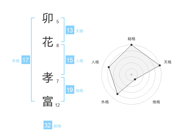 卯花 孝富さんを姓名の画数から五運を鑑定