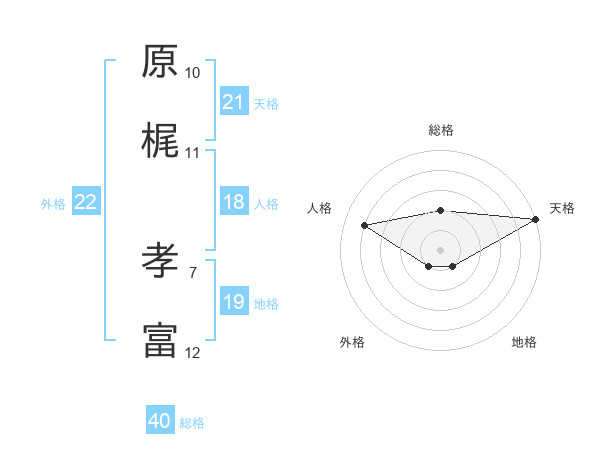 原梶 孝富さんの外格は22画の1点!