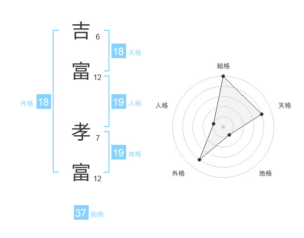 吉富 孝富さんの総格は37画の5点!