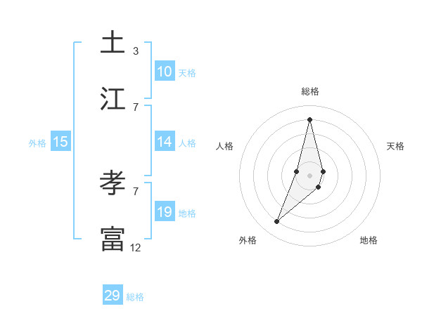 土江 孝富さんの総格は29画の4点!