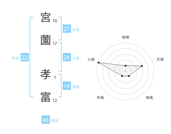 宮薗 孝富さんを姓名の画数から五運を鑑定