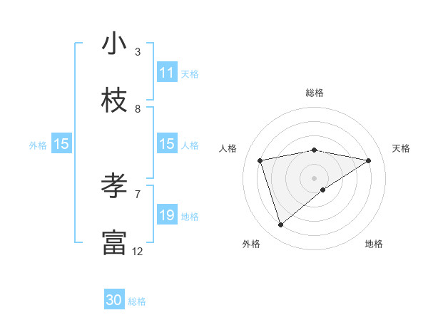 小枝 孝富さんを姓名の画数から五運を鑑定