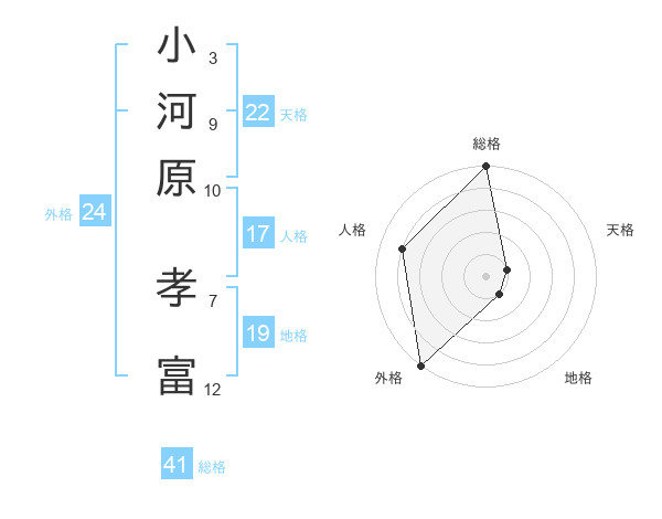 小河原 孝富さんの総格は41画の5点!
