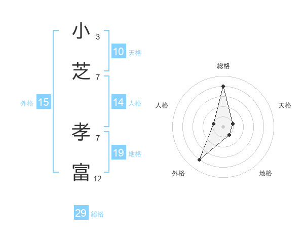 小芝 孝富さんを姓名の画数から五運を鑑定