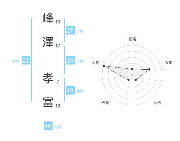 峰澤 孝富さんを姓名の画数から五運を鑑定
