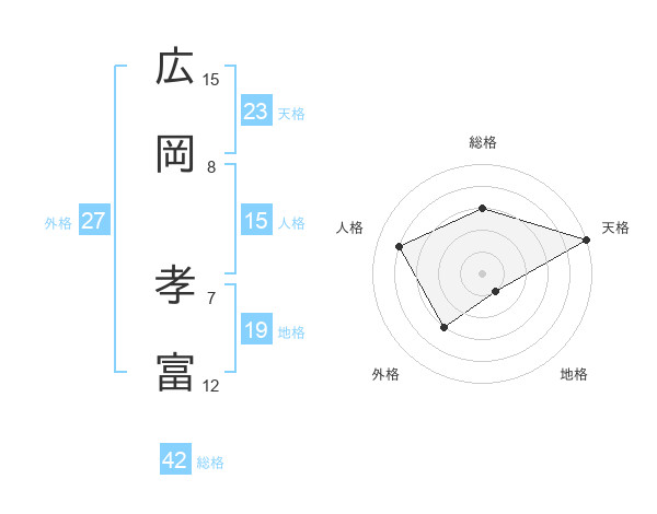 広岡 孝富さんの総格は42画の3点!