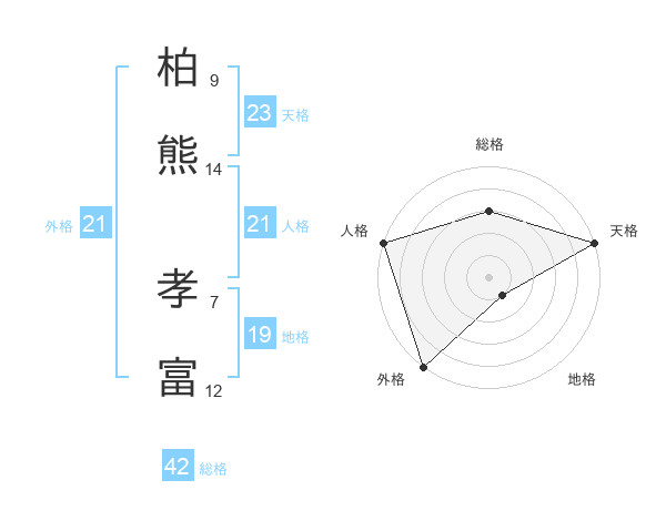 柏熊 孝富さんを姓名の画数から五運を鑑定