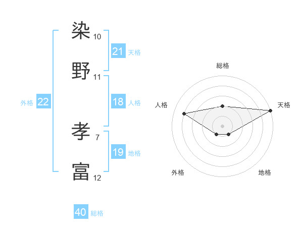 染野 孝富さんの総格は40画の2点!