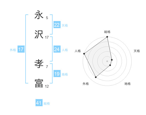 永沢 孝富さんの総格は41画の5点!