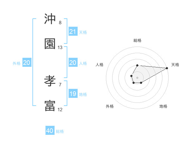 沖園 孝富さんを姓名の画数から五運を鑑定