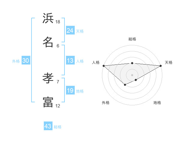 浜名 孝富さんの総格は43画の2点!