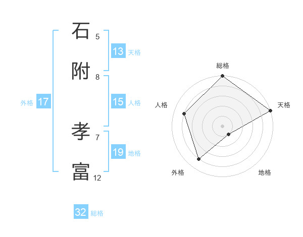 石附 孝富さんの天格は13画の5点!