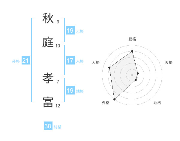 秋庭 孝富さんを姓名の画数から五運を鑑定