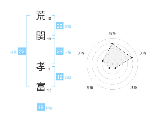荒関 孝富さんの総格は48画の4点!