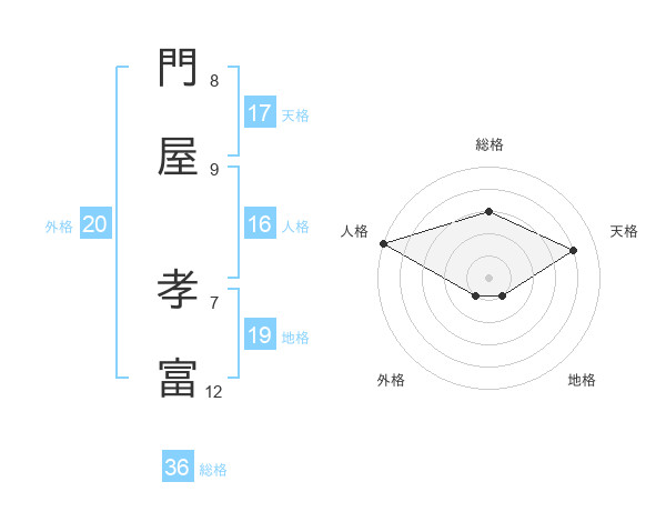 門屋 孝富さんの天格は17画の4点!
