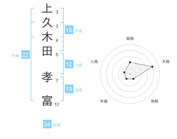 上久木田 孝富さんを姓名の画数から五運を鑑定
