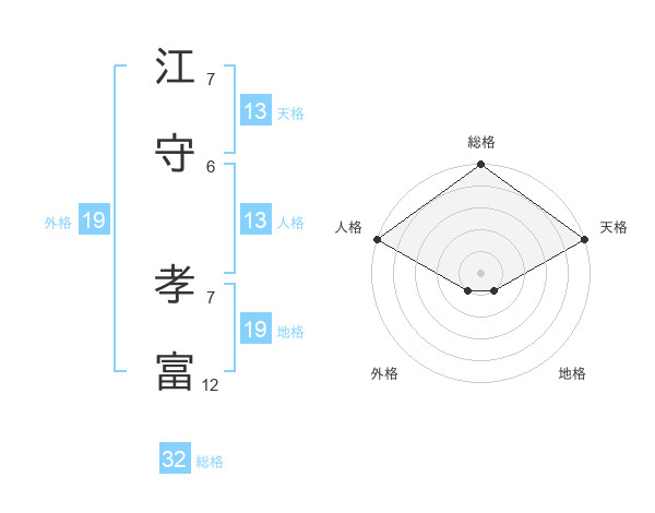江守 孝富さんの総格は32画の5点!