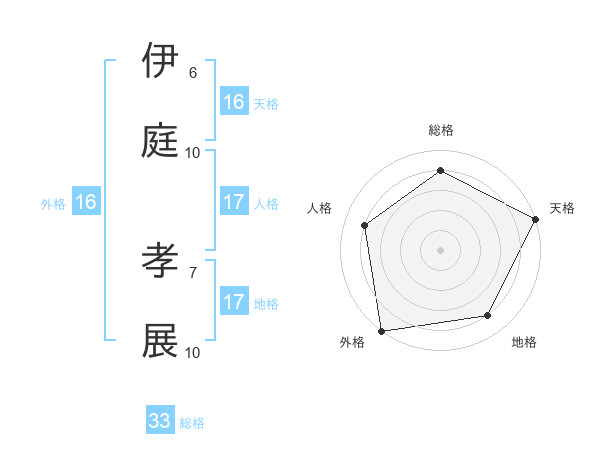 伊庭 孝展さんの外格は16画の5点!