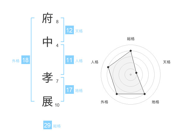 府中 孝展さんの総格は29画の4点!