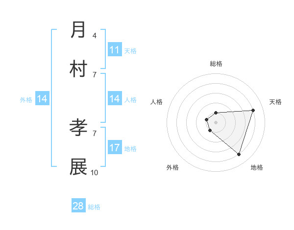 月村 孝展さんの天格は11画の4点!