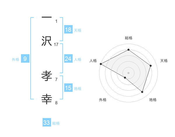 一沢 孝幸さんを姓名の画数から五運を鑑定