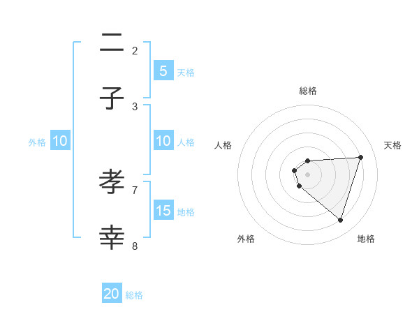 二子 孝幸さんの総格は20画の1点!