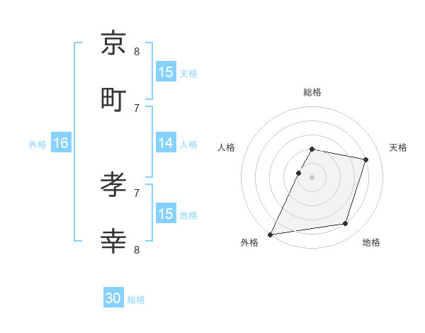 京町 孝幸さんの天格は15画の4点!