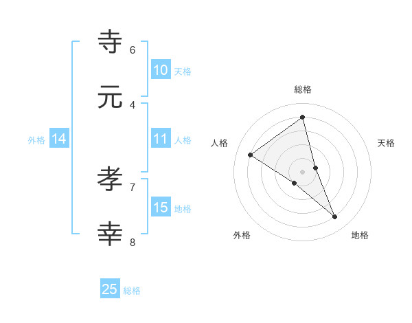 寺元 孝幸さんの総格は25画の4点!