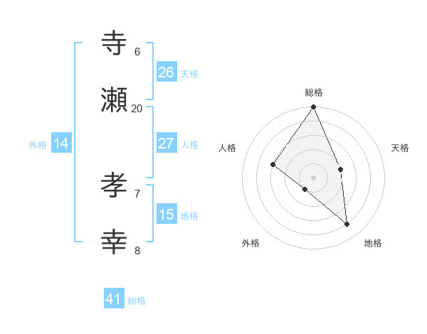 寺瀬 孝幸さんの総格は41画の5点!