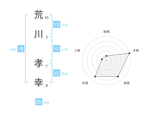 荒川 孝幸さんを姓名の画数から五運を鑑定