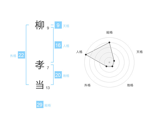 柳 孝当さんの総格は29画の4点!