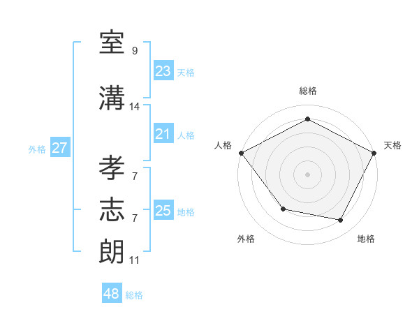 室溝 孝志朗さんを姓名の画数から五運を鑑定