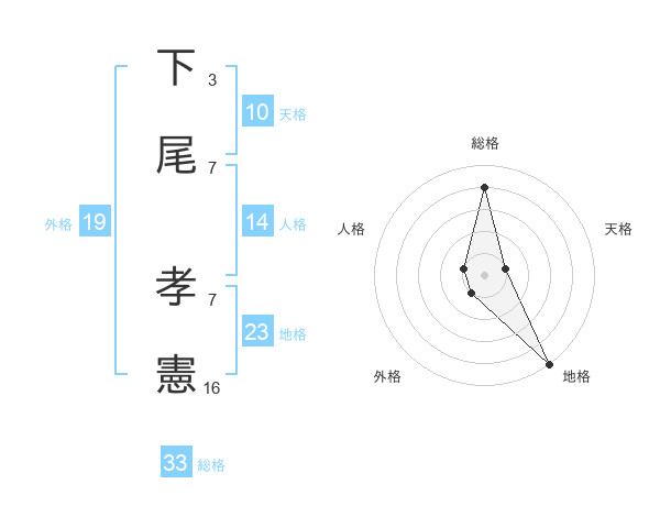 下尾 孝憲さんの総格は33画の4点!