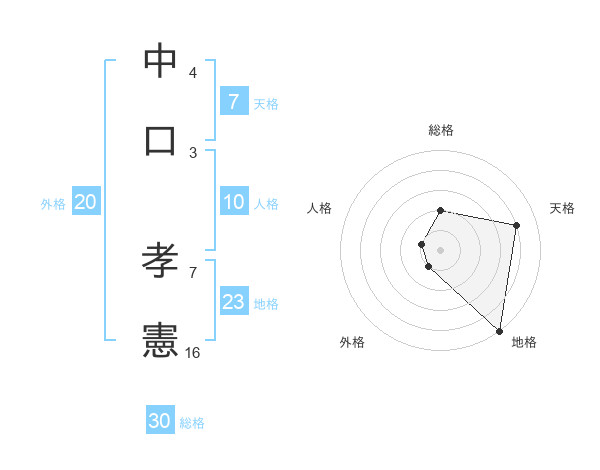中口 孝憲さんの総格は30画の2点!