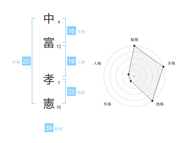中富 孝憲さんを姓名の画数から五運を鑑定