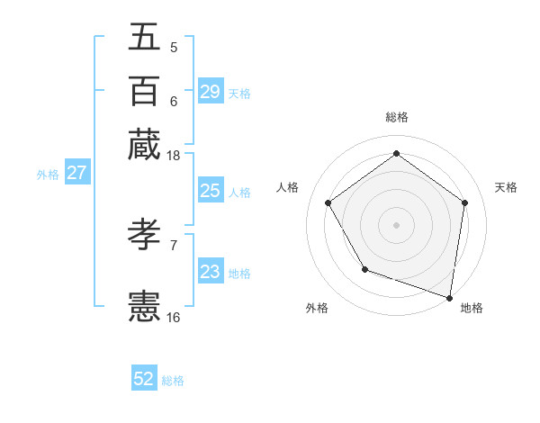 五百蔵 孝憲さんの総格は52画の4点!