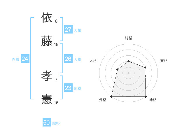 依藤 孝憲さんの総格は50画の2点!