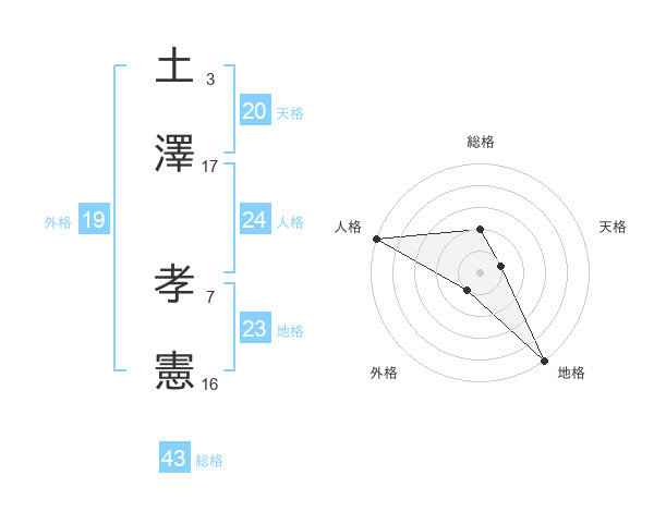 土澤 孝憲さんの総格は43画の2点!