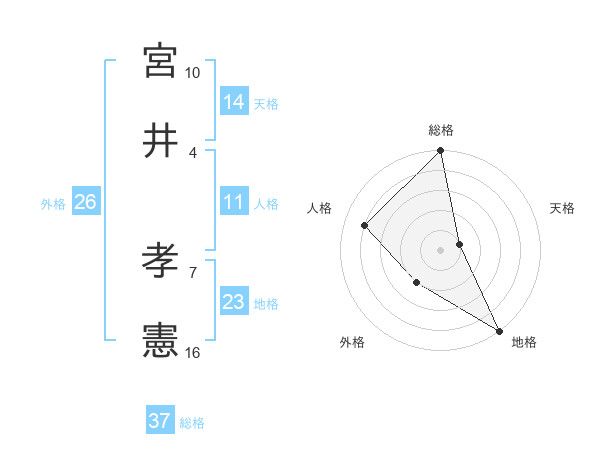 宮井 孝憲さんの総格は37画の5点!