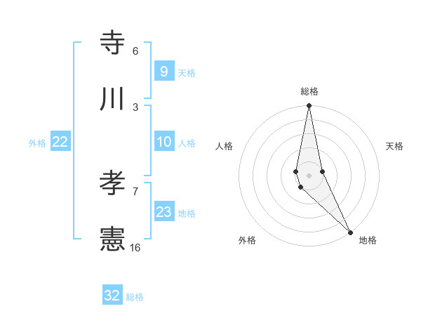 寺川 孝憲さんの総格は32画の5点!