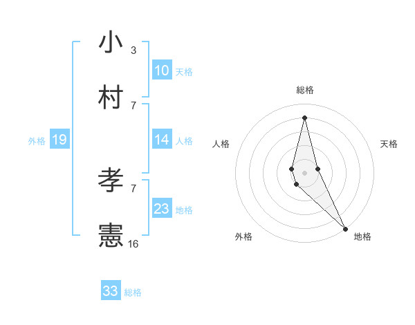 小村 孝憲さんを姓名の画数から五運を鑑定