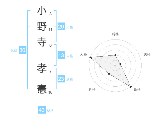 小野寺 孝憲さんの総格は43画の2点!