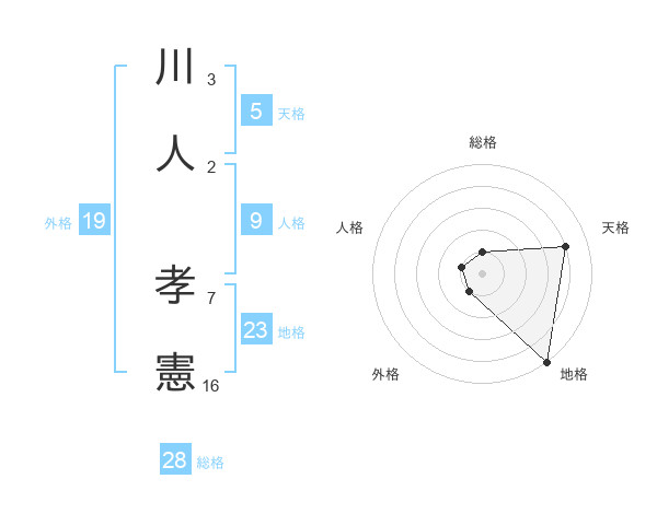 川人 孝憲さんを姓名の画数から五運を鑑定