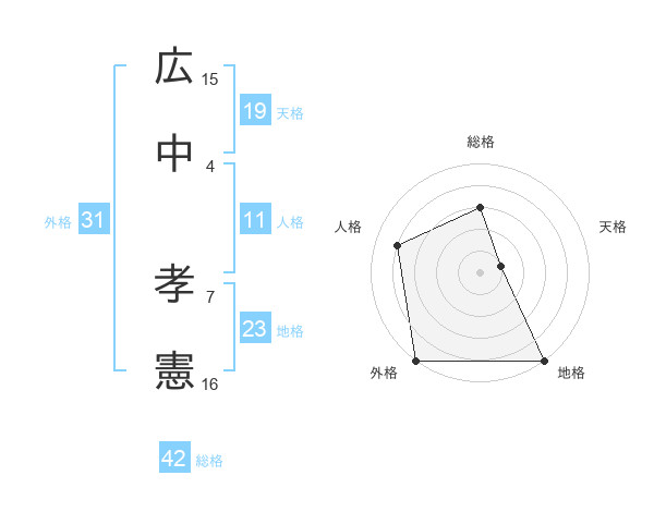 広中 孝憲さんの総格は42画の3点!