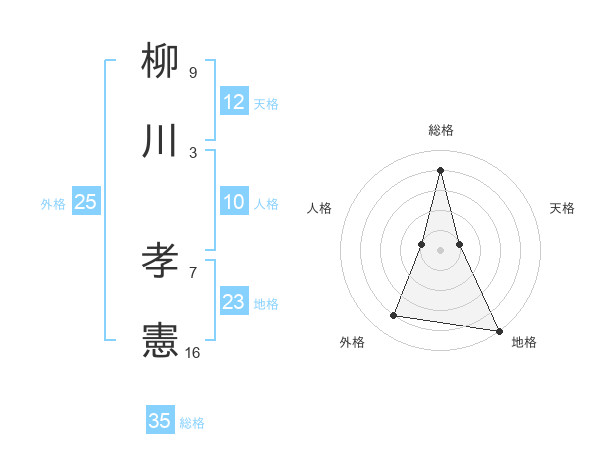 柳川 孝憲さんを姓名の画数から五運を鑑定