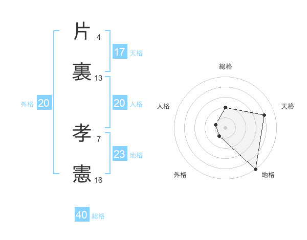 片裏 孝憲さんを姓名の画数から五運を鑑定