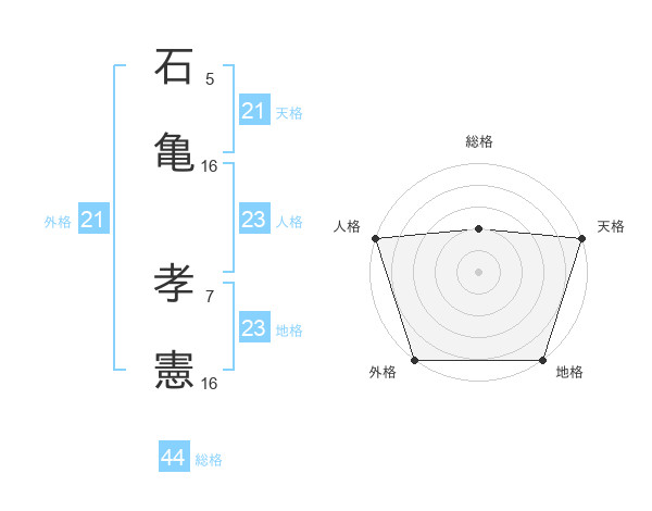石亀 孝憲さんの天格は21画の5点!