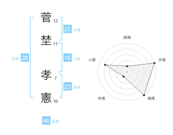 菅埜 孝憲さんの天格は23画の5点!