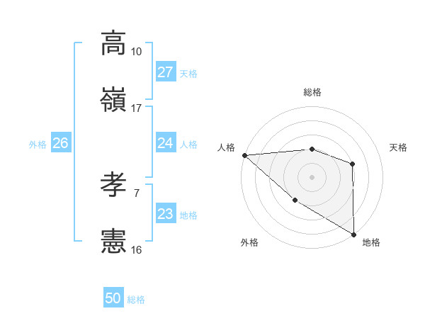 高嶺 孝憲さんを姓名の画数から五運を鑑定