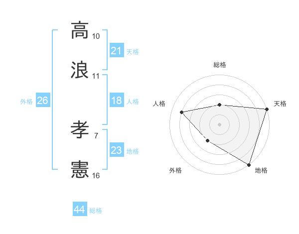 高浪 孝憲さんを姓名の画数から五運を鑑定